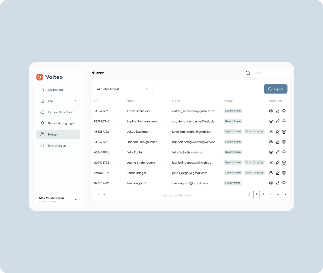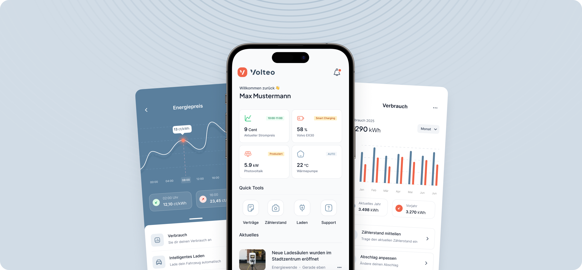 Basierend auf einer modularen Architektur bündelt Volteo alle relevanten Services von Stadtwerken in einer App – von dynamischen Tarifen über HEMS bis hin zu Vertrags- und Verbrauchsmanagement